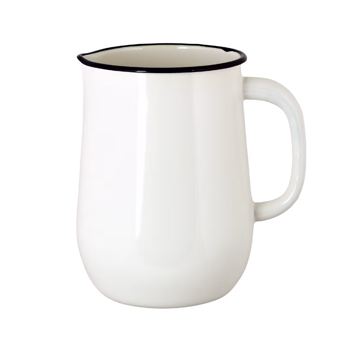 Klassisk, gammaldags kanna i vit emalj med svart kant. Kannan rymmer 2,5 liter och kan användas till både varm och kall dryck. Även fin som vas med en blomsterb