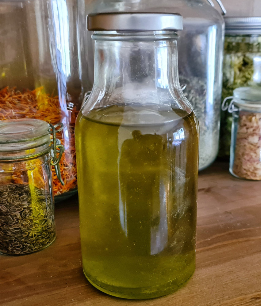 ![]() | Vi plockar både bären och barr och gör en underbart värmande olja för trötta och frusna händer och muskler. Vi fyller en burk med två tredjedelar bär och barr, fyller på med rapsolja och låter stå i 3 veckor. Enbär innehåller ämnen som stimulerar blodcirkulationen lokalt, så det blir en superhärlig massageolja. Sedan är ju bären förstås också en delikatess i köket. Skogen levererar fantastiska råvaror även så här års! |