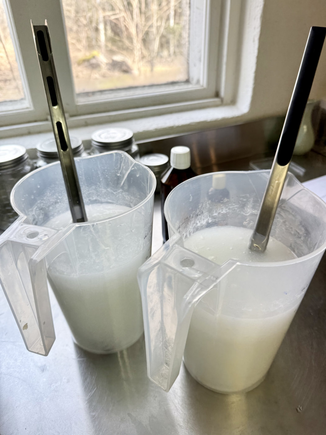 ![]() | Idag har vi varit ute i tvålstugan och gjort flytande tvål. Precis som vanligt blandar vi allt för hand och fyller flaskorna en efter en. Det tar sin tid, men det är just det vi gillar. Att jobba med händerna och känna hur något nytt tar form. Varför gör vi så här? För oss handlar det om mer än bara tvål. Det handlar om att ta sig tid, att vara närvarande och att skapa något med egna händer. När vi står där i stugan och jobbar, känns det som att vi får med oss lite av skogens lugn i varje flaska. |
