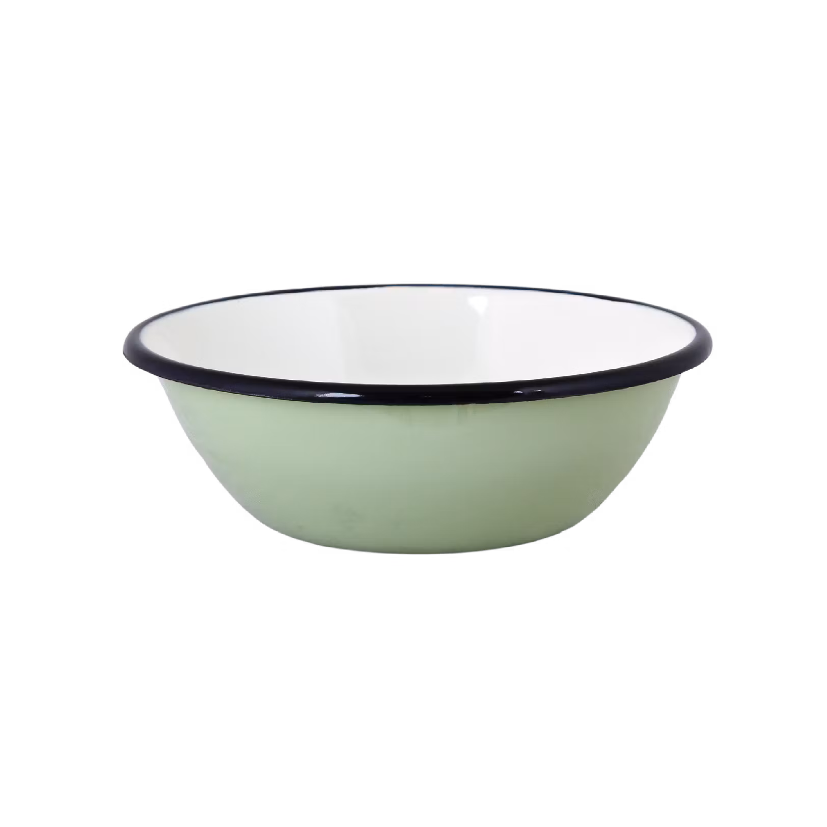 Liten, klassisk och gammaldags skål i grön emalj med svart kant och insida i offwhite. Skålen rymmer 0,6 liter och passar perfekt i det dagliga köket, på lantstället eller i torpet.