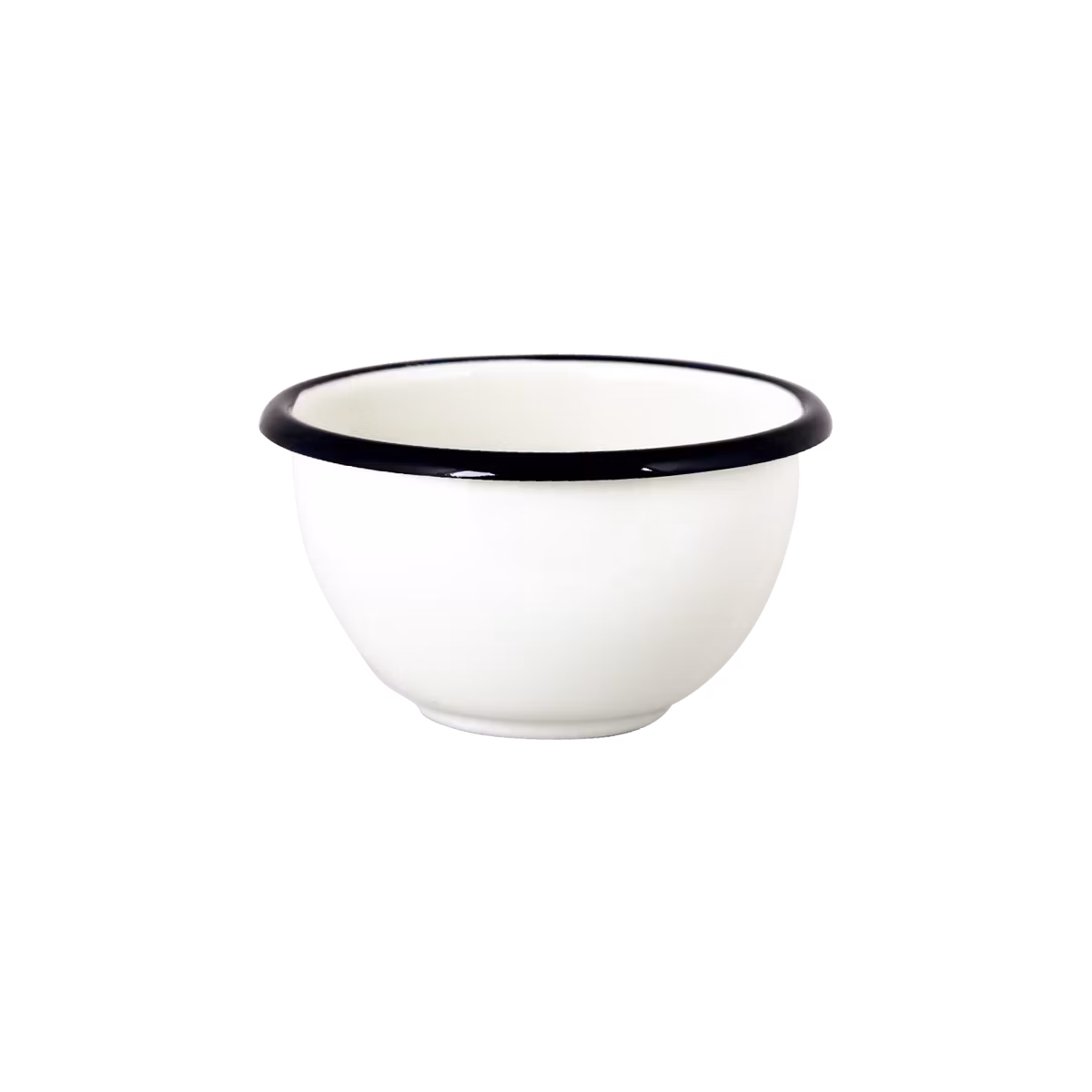 Liten, klassisk och gammaldags skål i vit emalj med svart kant. Skålen rymmer 0,4 liter och passar perfekt i det dagliga köket, på lantstället eller i torpet.